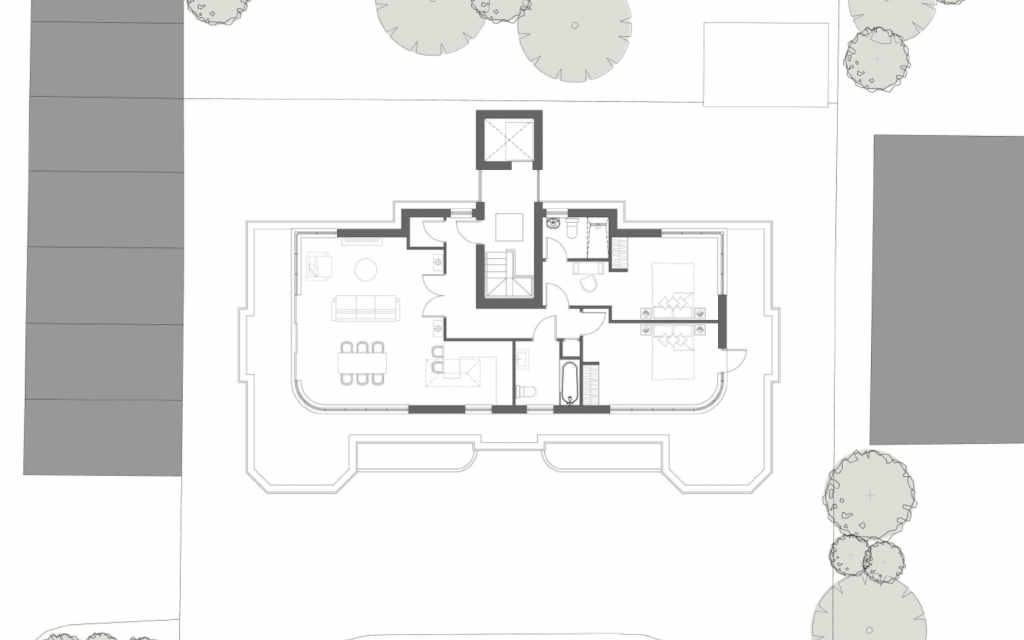 The brief for this project was to extend an existing local interest, three-storey, art deco block of flats to include a fourth-storey penthouse apartment for the building owner.