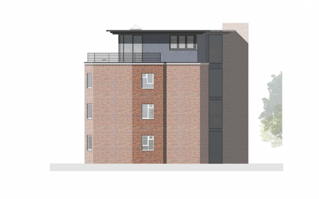 In order to ensure a clear narrative in regard to the historic fabric, a clear distinction is made with grey zinc cladding contrasting the red multi stock brick of the existing building. Full height, floor to ceiling windows further emphasises the break and allows the penthouse to take advantage of views directly out towards the sea.